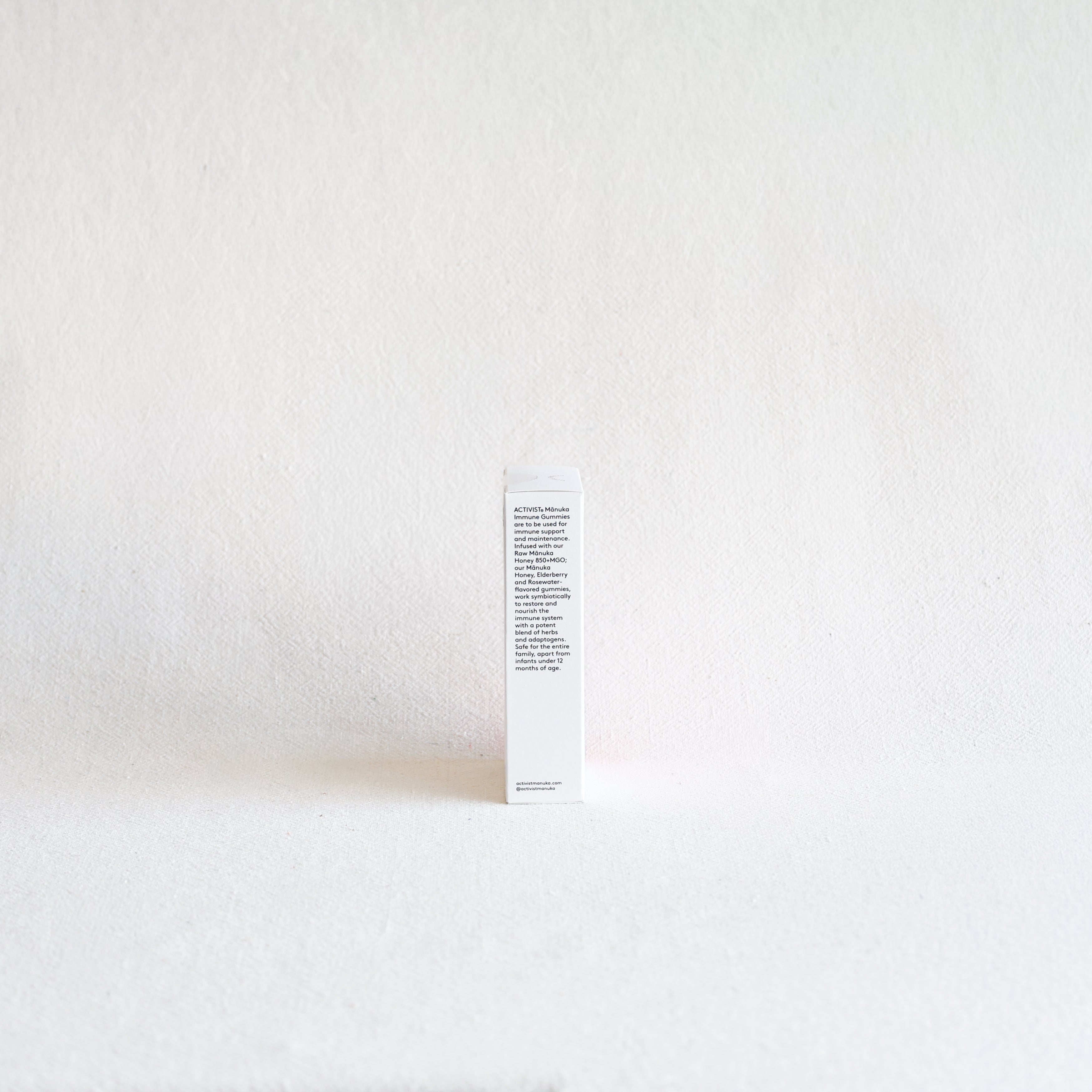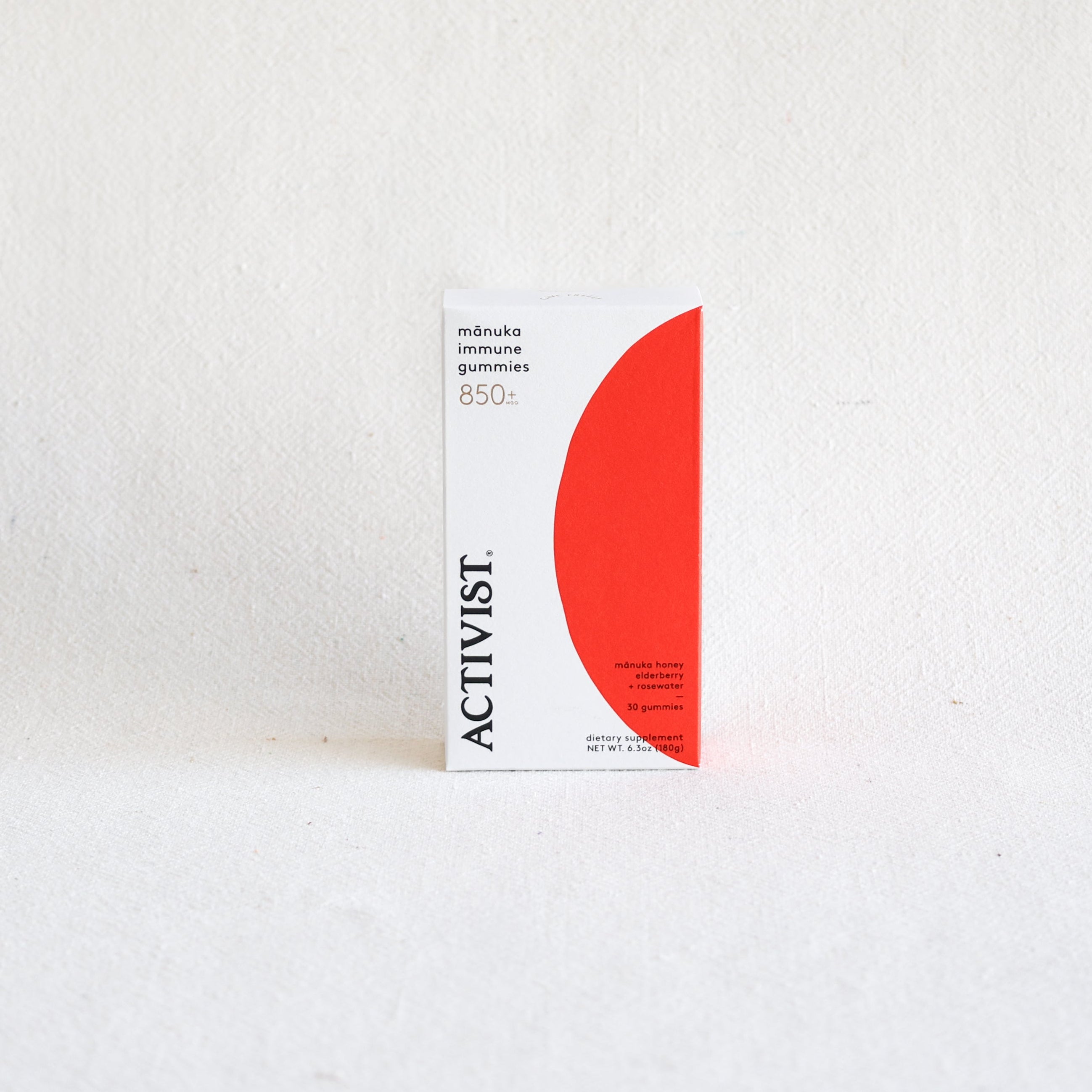 ACTIVIST Mānuka Immune Gummies are to be used for immune support and cellular beauty benefits. Infused with Raw Mānuka Honey 850+MGO; Mānuka Honey, Elderberry and Rosewater, gummies work symbiotically to restore and nourish the immune system with herbs, adaptogens, and added benefits for skin health.
