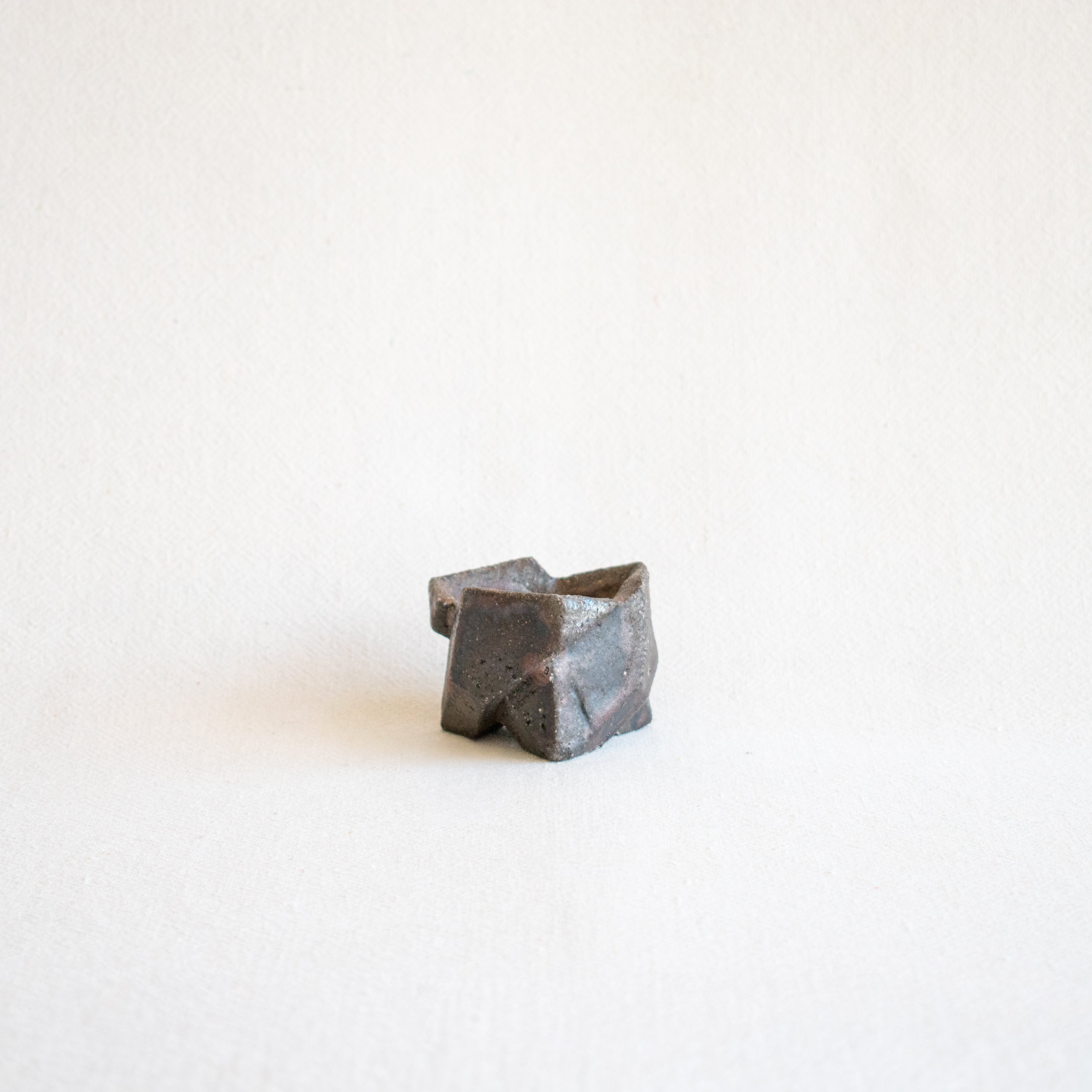 Cross was immediately drawn to the ancient process of wood-firing, which gives each piece a patina that evokes ancient artifacts, old stone structures or discarded post-apocalyptic future relics. His vessels suggest simple minimalism, evoking geology, science fiction and modern art. His sculptural pieces, bold and primitive in their forms, combine a modern sensibility with textural materiality. His printmaking background also remains evident in his pieces, which favor strong silhouettes, hard edge lines and repetitive leitmotif.