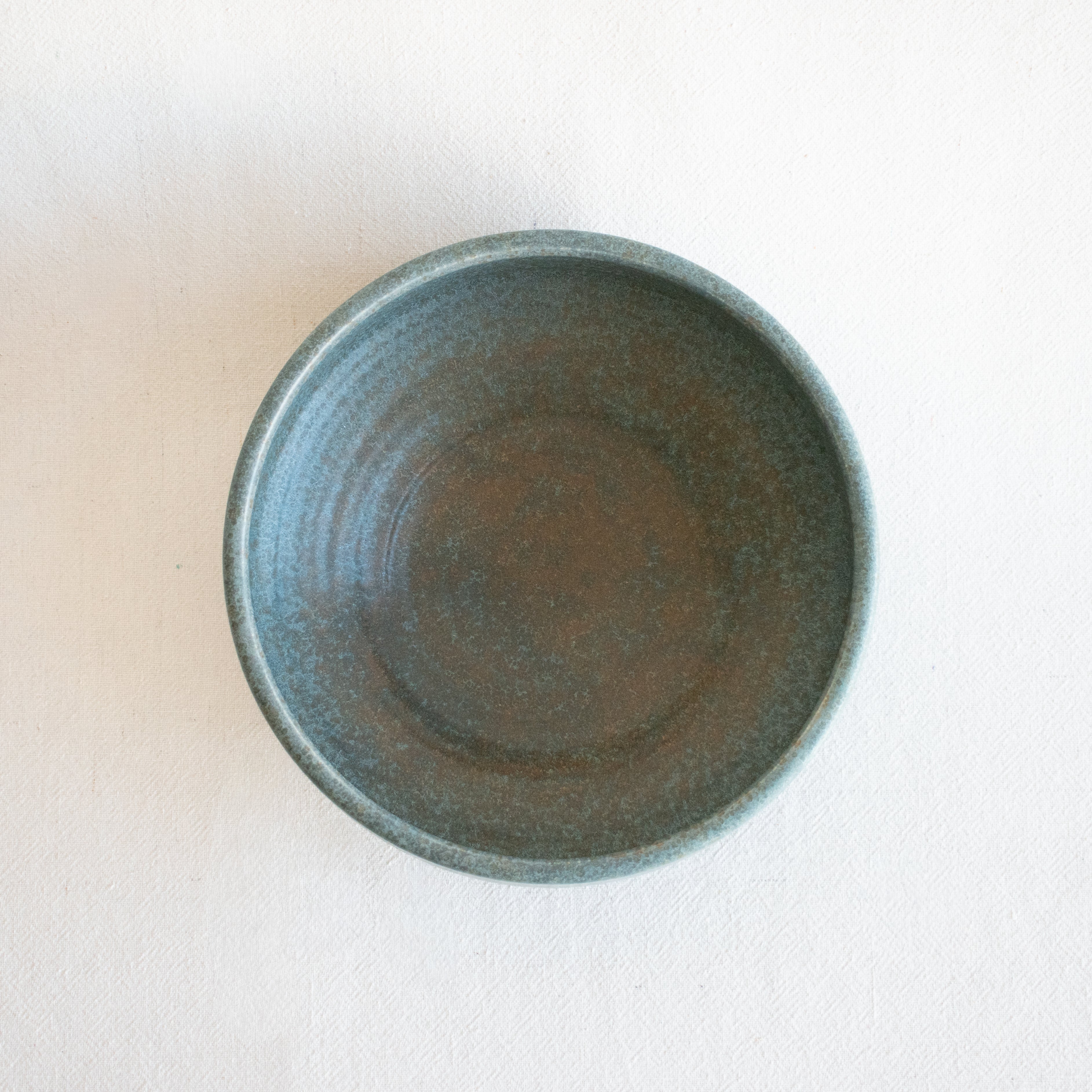 Capturing the essence of California pottery, this stoneware bowl strikes the balance of quiet elegance with an architecturally-focused shape. Handmade in California, and designed to become a functional, timeless work of art. Finished in a a soft grey blue glaze with bronze undertones. Food Safe.