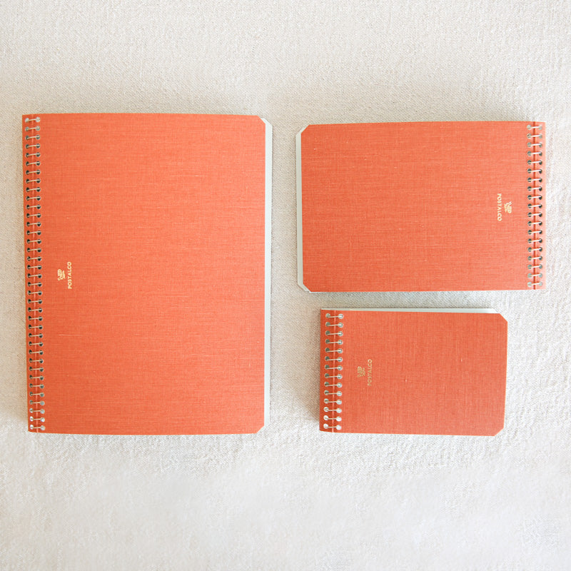 Suitable for writing, drawing, and doodling, these notebooks by Postalco are classic and functional design items. Ecologically made, chlorine-free graph paper and a water-resistant pressed cotton cover which is subtly adorned with the stylized carrier pigeon logo. The cover will gracefully lighten and texturize with use. The steel spiral binding is set on the back cover to make it possible to label the spine. Printed with Pin-graph, Postalco's original 1x1mm blue graph paper.