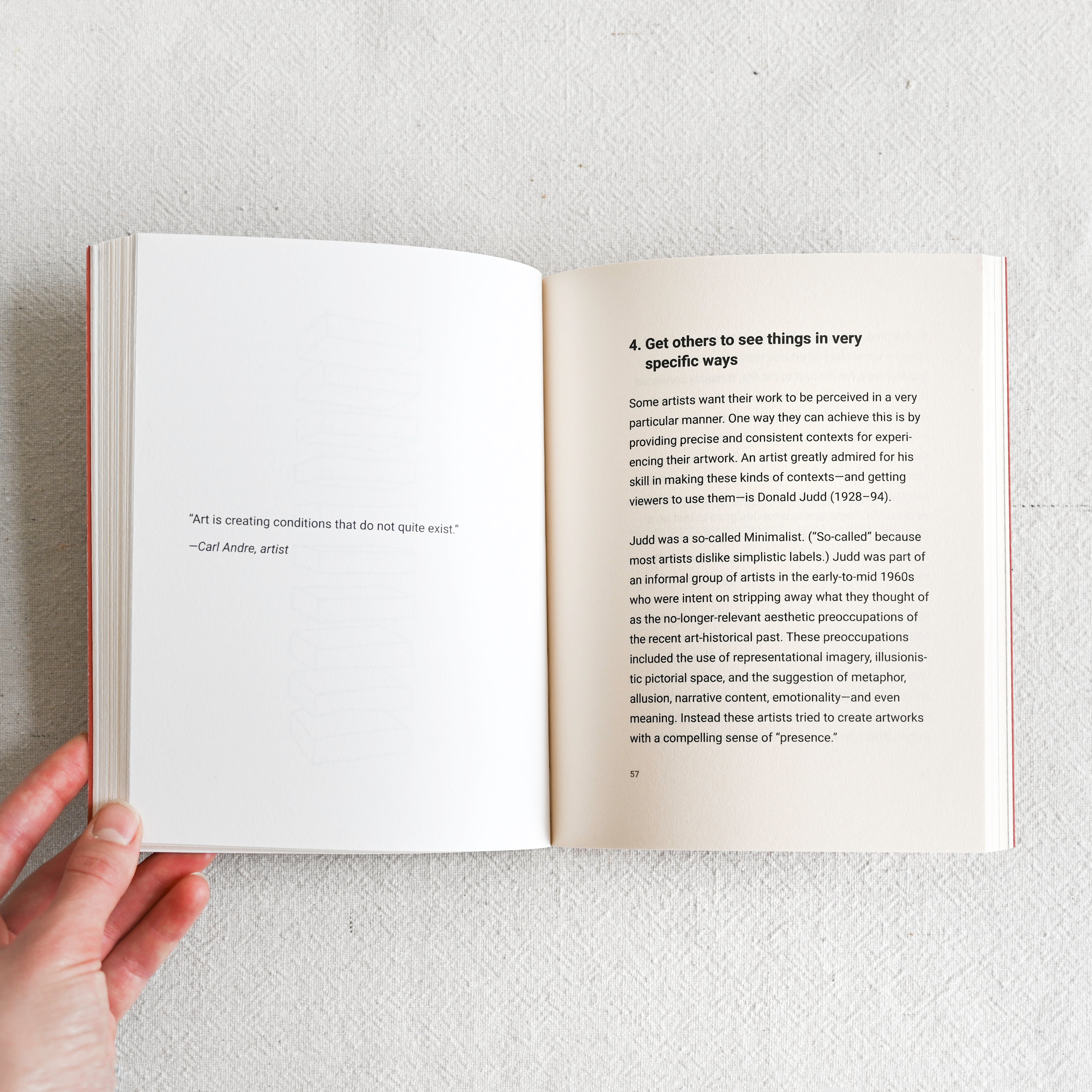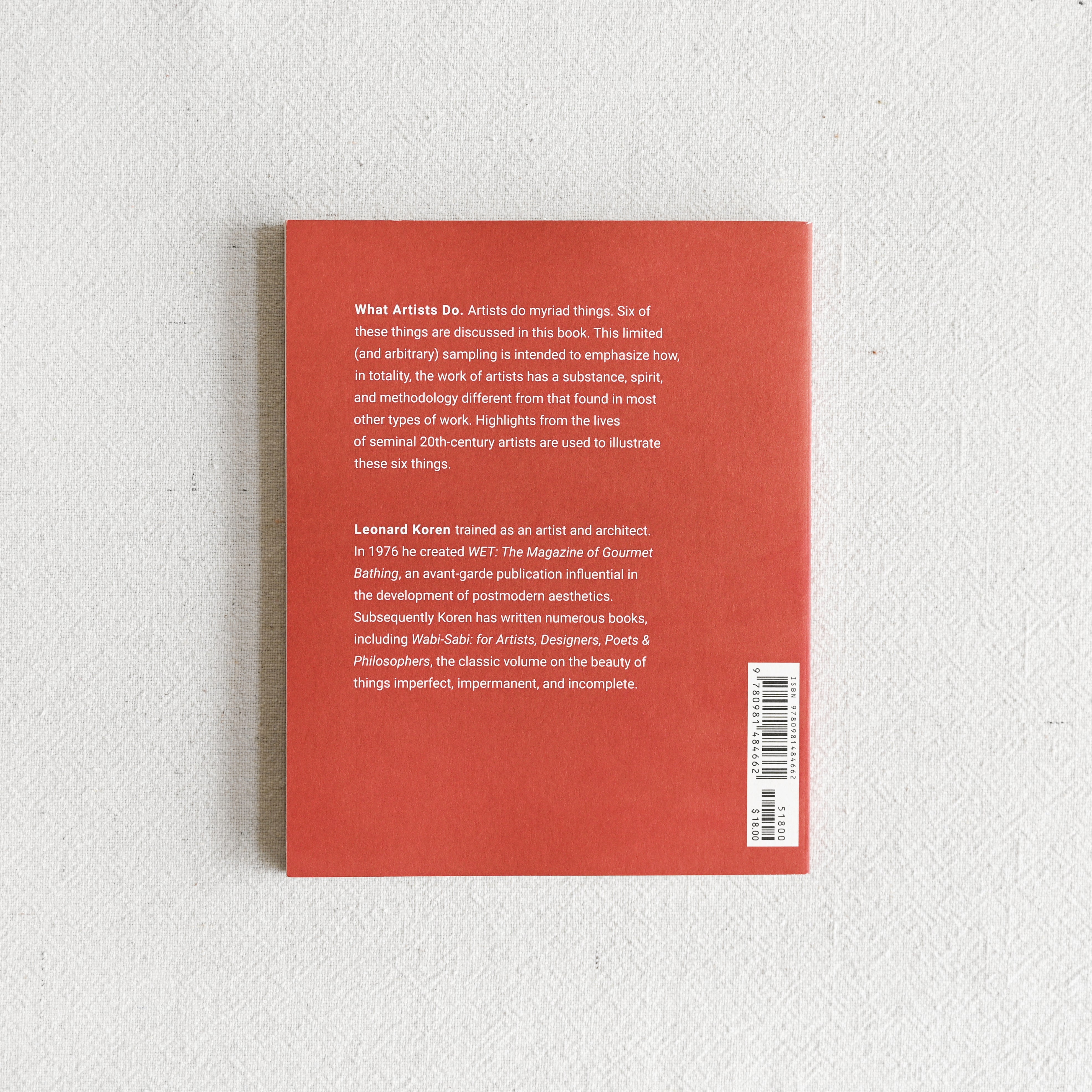 Artists do myriad things. Six of these things are discussed in this book by author Leonard Koren. This limited (and arbitrary) sampling is intended to emphasize how, in totality, the work of artists has a substance, spirit, and methodology different from that found in most other types of work. Highlights from the lives of seminal 20th-century artists, including Marcel Duchamp, John Cage, Richard Serra, Christo & Jean-Claude, Donald Judd, and On Kawara, are used to illustrate these six things.