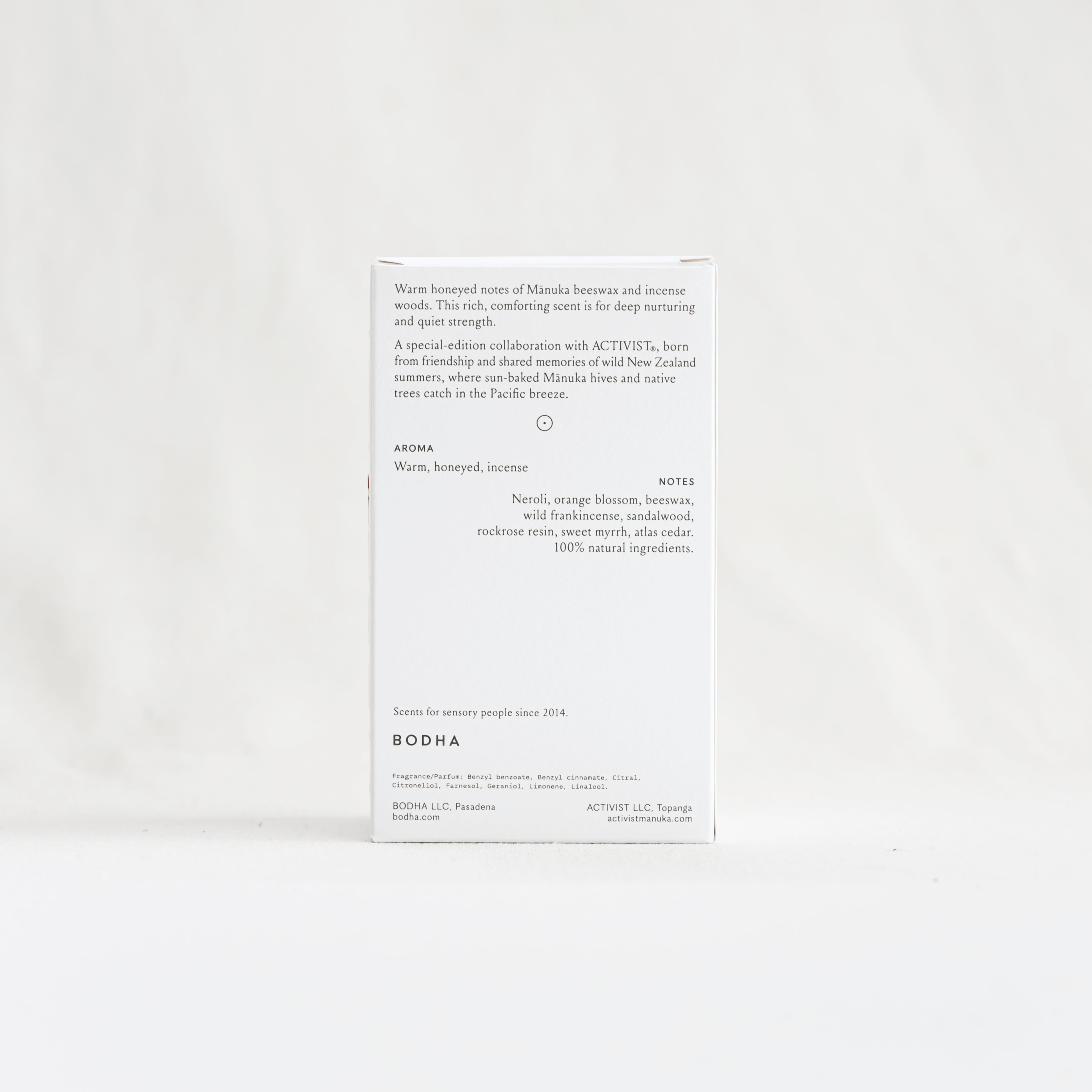 Limited Quantities. 100% natural perfume. A collaboration between two Kiwi friends and the founders of ACTIVIST and BODHA.