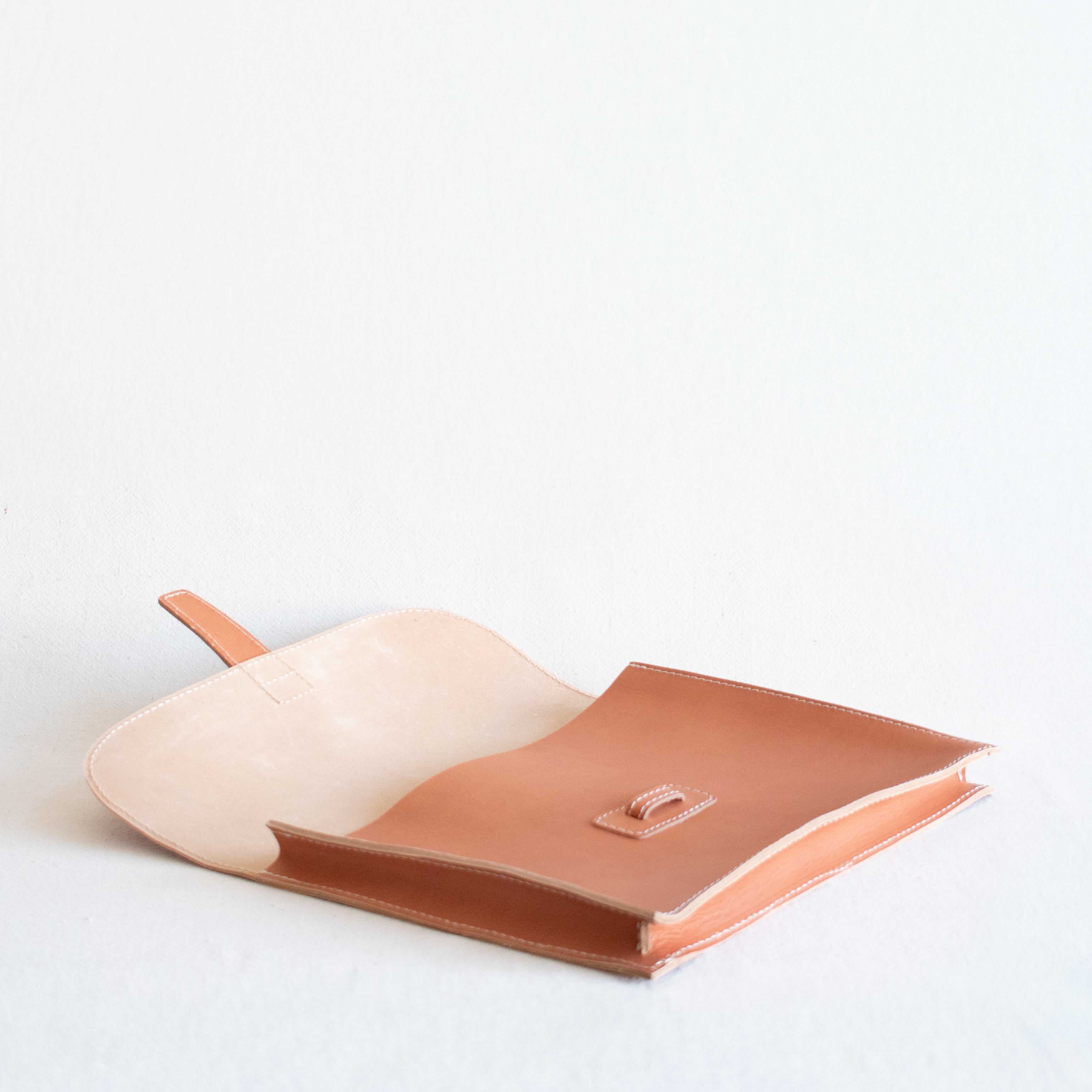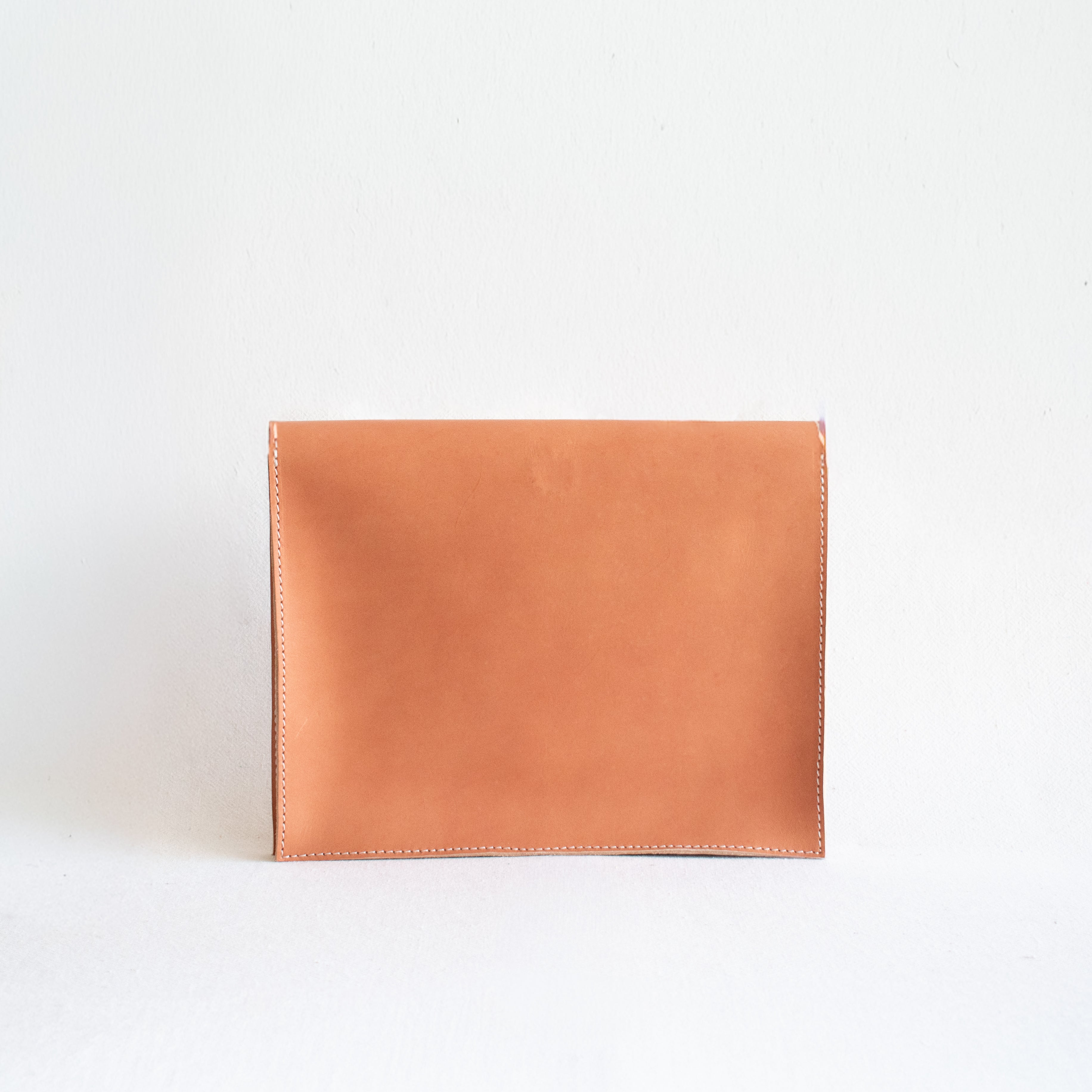 A lovely, structured Attache Clutch, from Agnes Baddoo in natural veggie tanned leather. Over time the leather will tan to a beautiful dark honey hue. Features one exterior pocket and unlined interior.
